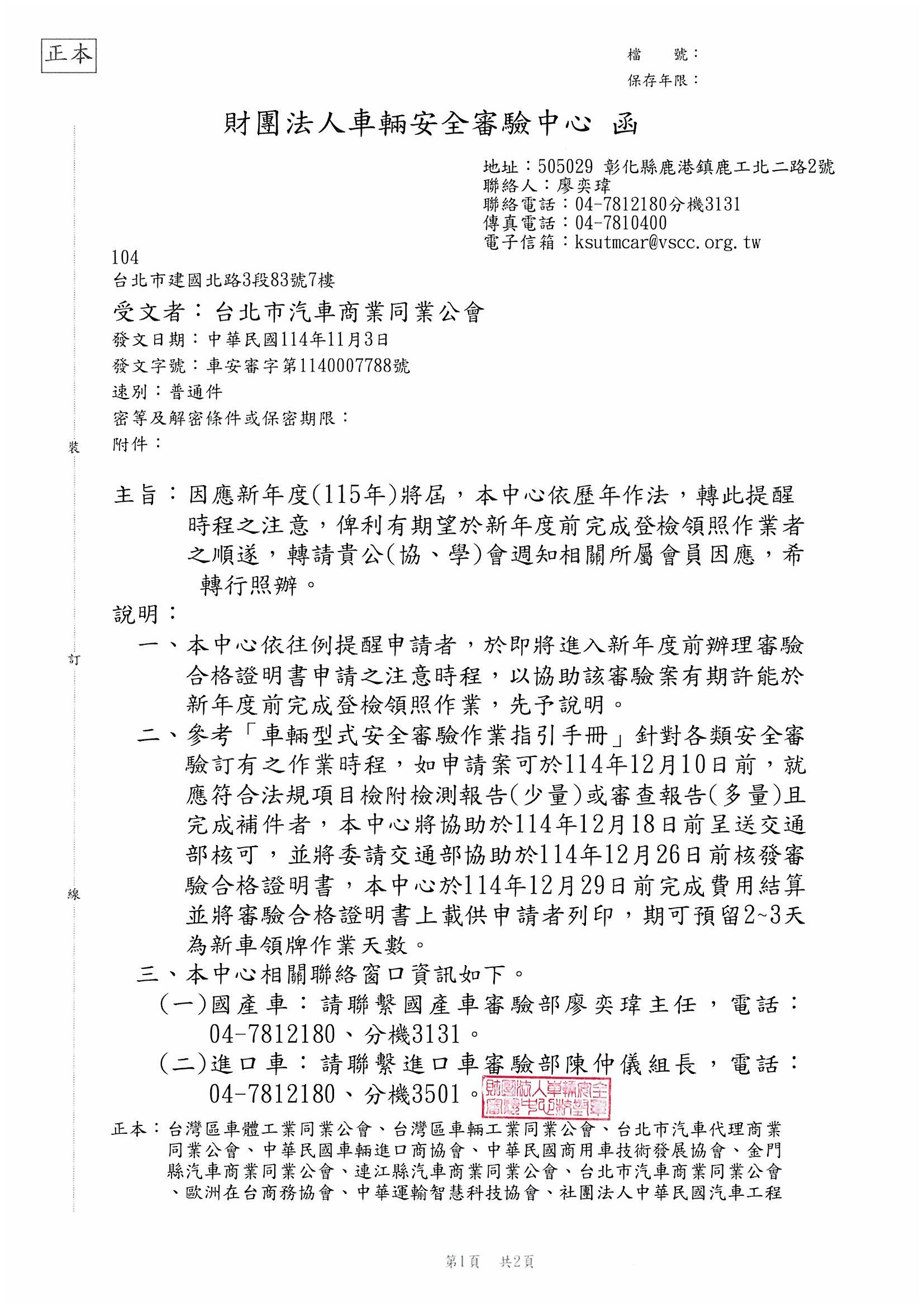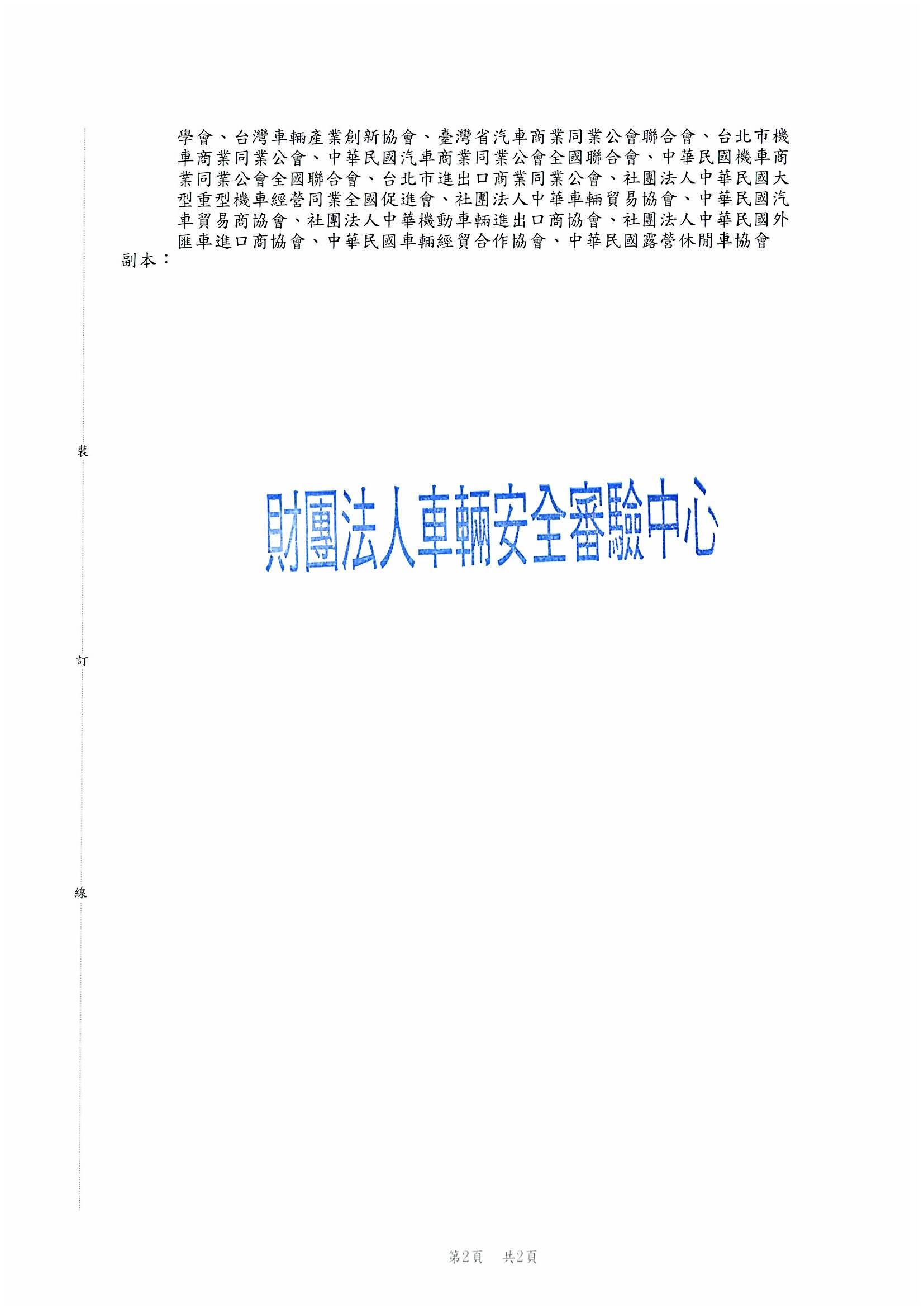 - 轉知:財團法人車輛安全審驗中心